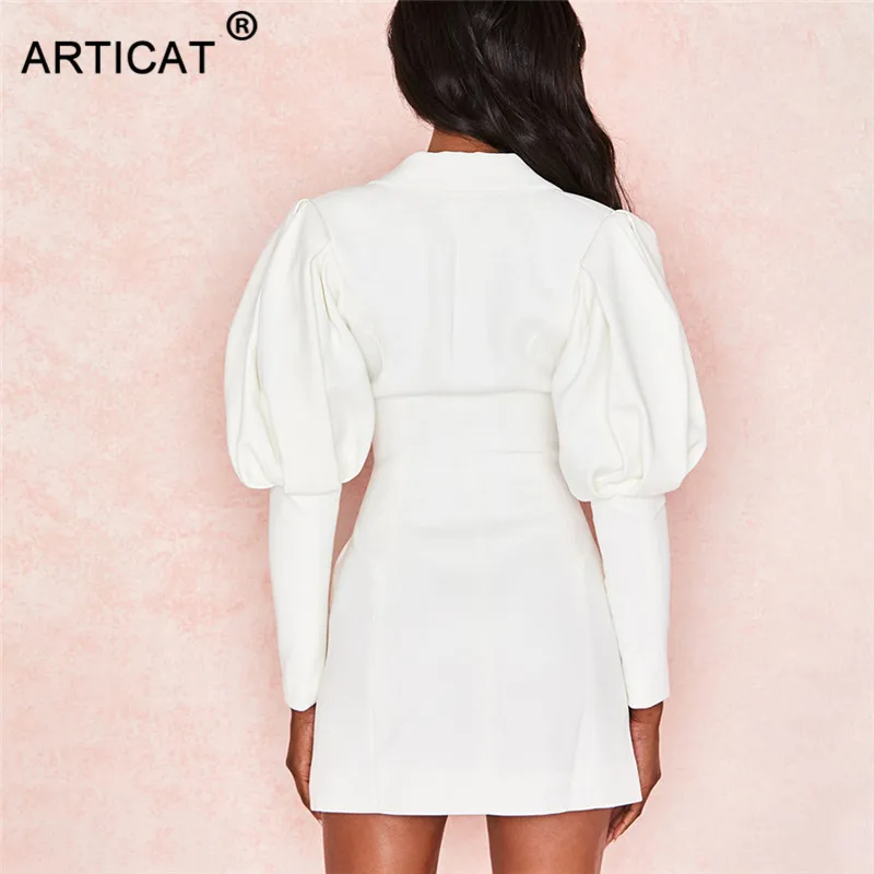 Articat White Office Ladies Blazer Dress Women Lantern Sleeve Single Breasted Bodycon Party Dress E