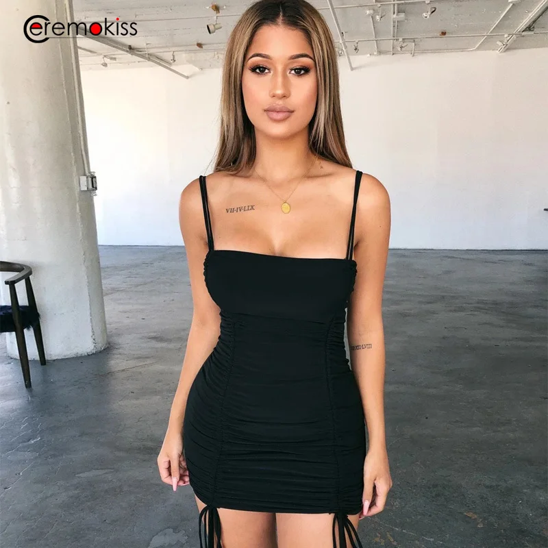 ceremokiss summer sexy women dress red spaghetti strap backless bodycon dresses ruched draped banda